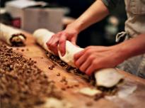A few of us arrive at 4:00am. Edhi and Irene start rolling out the cheese rolls and knotting the brioche. Lorenzo's in the back mixing the scones, whole grain and cheese breads of the day. Lizzy is shaping the sourdough loaves and baguettes, cutting english muffins and shaping the focaccia.